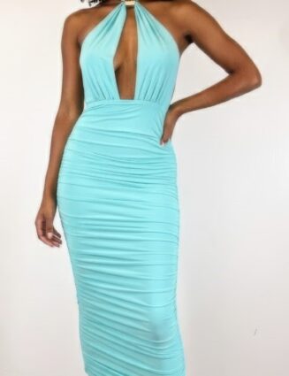 Strapless Necklace Detail Open Back Midi Dress