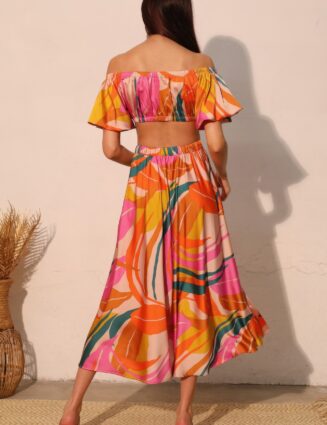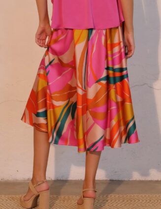 Isla Tropical Satin Midi Swing Skirt